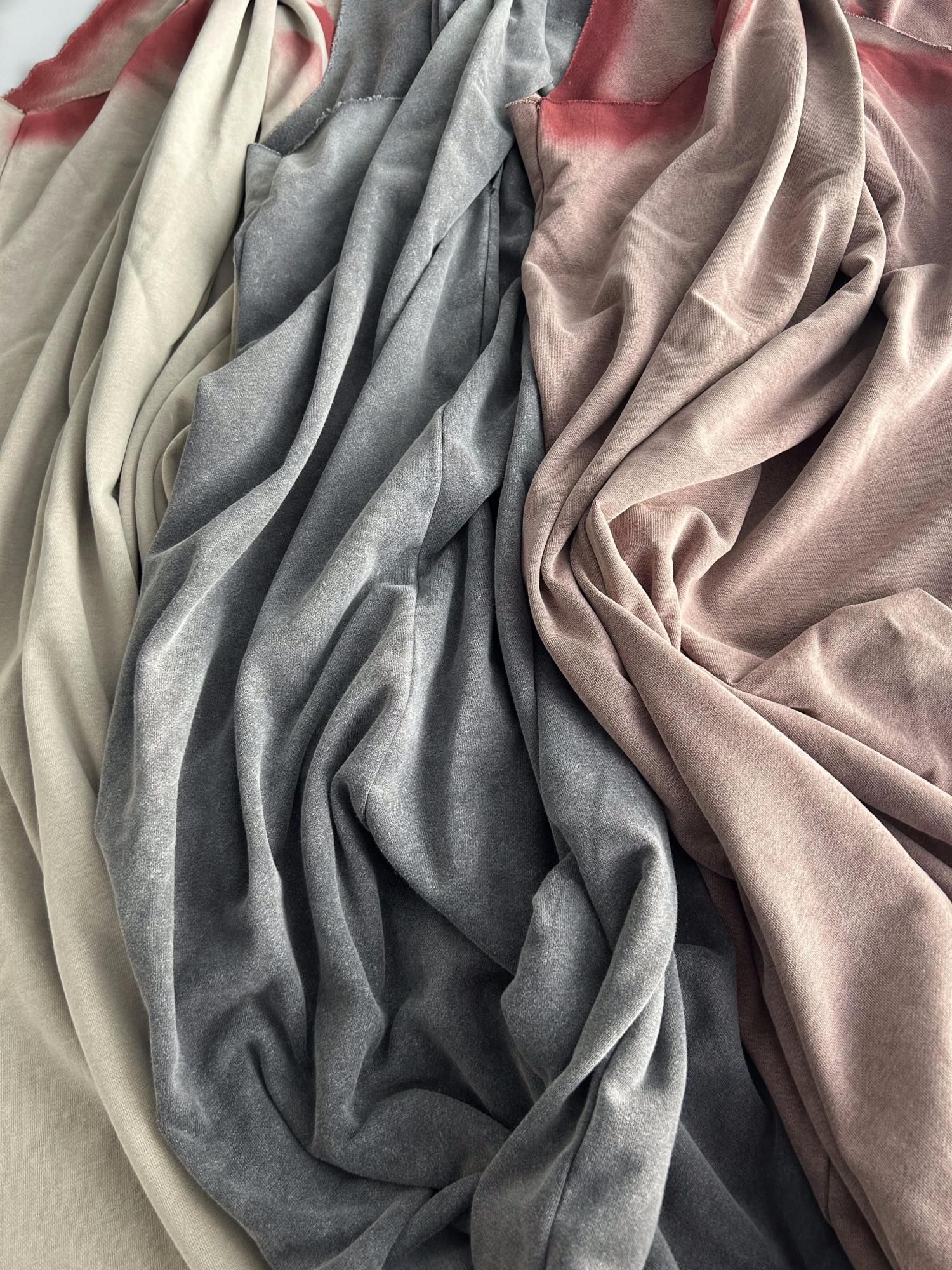 [綿85%、ポリエステル15%] 本製品には裁ち切りのデザインが施されている部分がございます。 そのため、ご使用の際に多少のほつれが生じることがありますが、デザインの特性としてお楽しみください。 お取り扱いの際は、優しく扱っていただくようお願いいたします。 本製品は手作業によるスプレー加工が施されているため、模様の出方や色の濃淡には個体差があります。 伸びやすいため取り扱いにご注意ください。